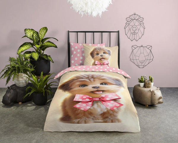 Of je nu houdt van cartoonhondjes, realistische puppy’s of speelse patronen: wij hebben voor elke kleine hondenfan een passend dekbedovertrek.