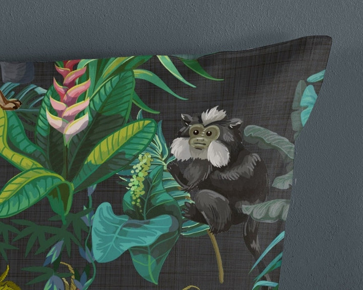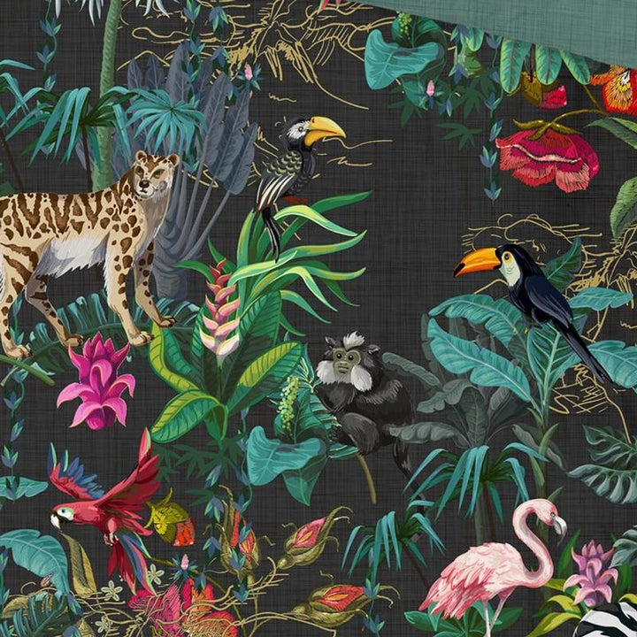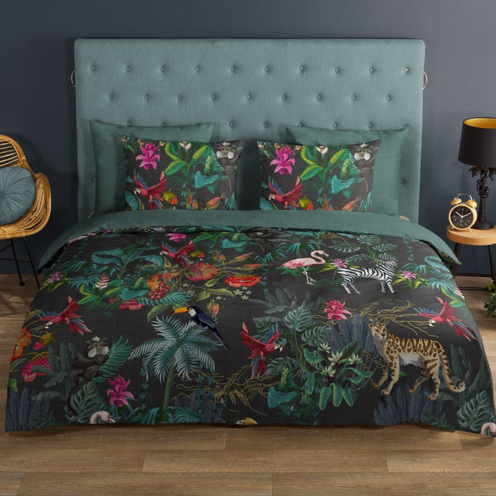 Het Good Morning dekbedovertrek Paradise is een prachtig safari/ jungle dieren dekbed overtrek met een levendige jungleprint. Het ontwerp toont verschillende planten en dieren, zoals apen, luipaarden en flamingo's, waardoor je jezelf in een tropisch paradijs waant.