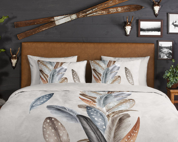 Geef je slaapkamer een rustgevende en stijlvolle uitstraling met het EINA dekbedovertrek in zandkleur. Het verfijnde verenpatroon in natuurlijke tinten zorgt voor een serene sfeer en een elegante touch. Perfect voor wie houdt van een warme, harmonieuze look in de slaapkamer.