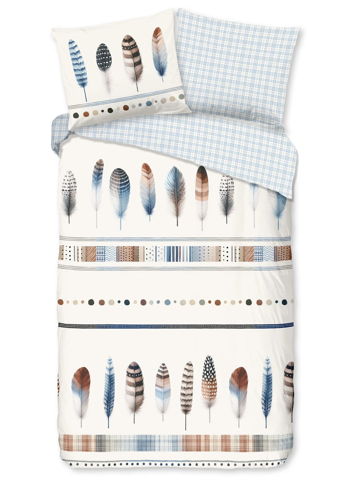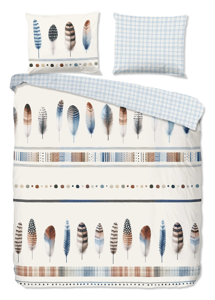 Begin je dag in een rustige en ontspannen sfeer met het Good Morning Niba dekbedovertrek. Het ontwerp met sierlijke veren in warme aardetinten en zachte blauwtinten brengt een vleugje natuurlijke charme in je slaapkamer. De ruitjesprint aan de binnenkant zorgt voor een speels en fris accent. De harmonieuze kleurencombinatie geeft het geheel een lichte en evenwichtige uitstraling. Perfect om je bed om te toveren tot een stijlvolle en serene plek om te ontspannen.