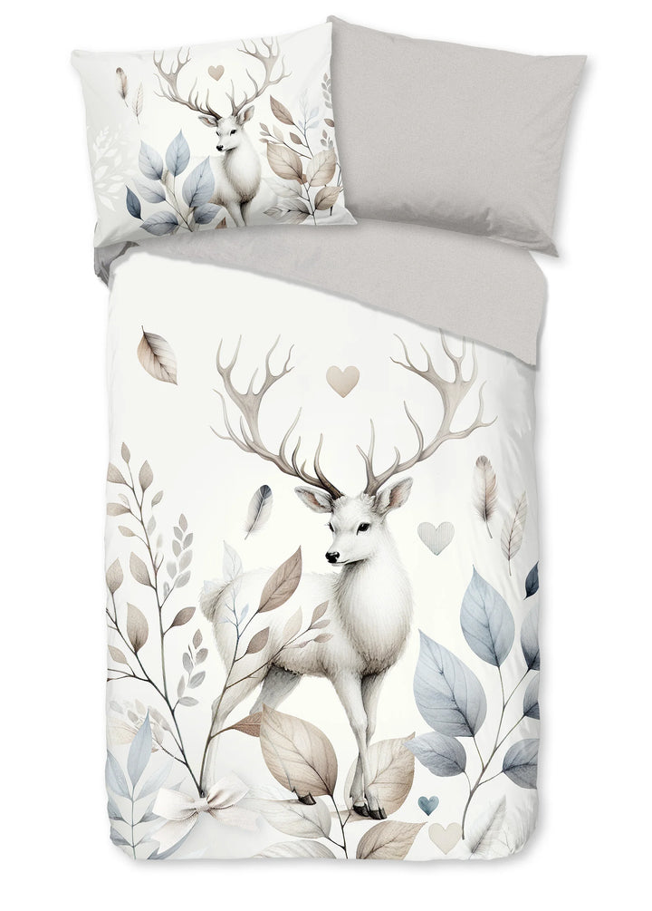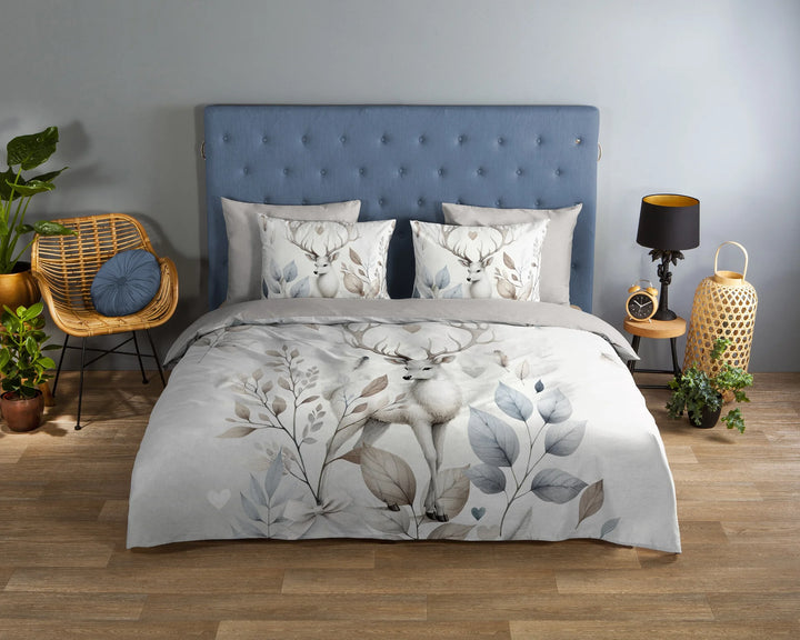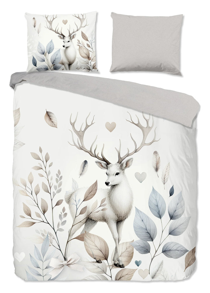 Breng een kalme, gezellige sfeer in je slaapkamer met het Good Morning Norda dekbedovertrek. Het ontwerp laat een sierlijk hert zien tussen subtiele bladeren in zachte bruin- en blauwgrijstinten op een...