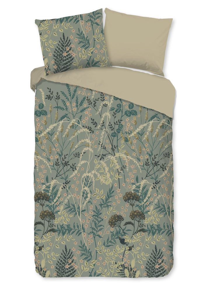 Breng een vleugje natuur in je slaapkamer met het Good Morning dekbedovertrek in zachte groentinten. Het verfijnde ontwerp met takjes, bladeren en subtiele bloemen zorgt voor een rustige en harmonieuze uitstraling. De effen taupe onderkant vormt een mooi contrast en brengt evenwicht in het geheel. Dit dekbedovertrek creëert een serene sfeer waarin je heerlijk tot rust komt. Perfect voor wie houdt van een natuurlijke en stijlvolle slaapkamer.
