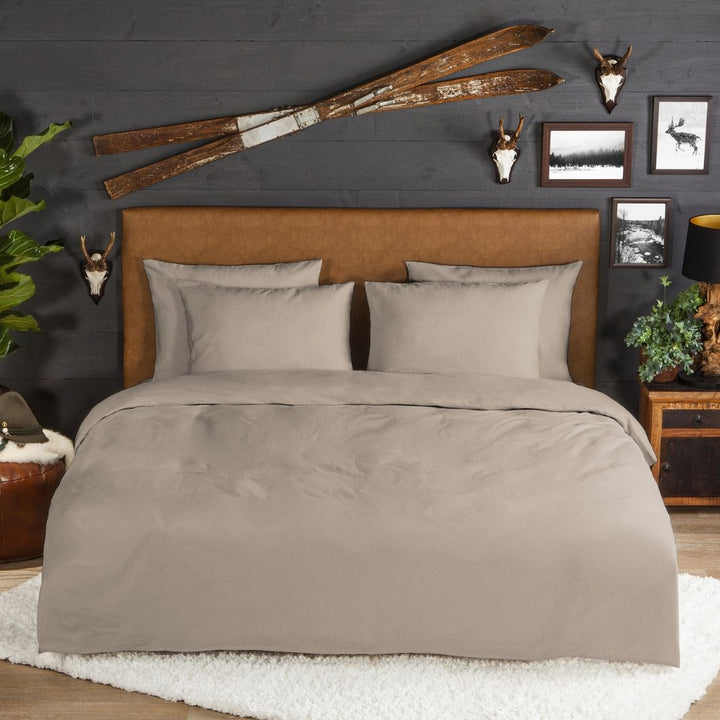 Breng een frisse en strakke uitstraling in je slaapkamer met het Good Morning Uni flanellen dekbedovertrek. Het effen zandkleurige ontwerp ademt rust en eenvoud, en sluit naadloos aan bij uiteenlopende interieurstijlen zoals Scandinavisch of minimalistisch. De zachte, neutrale tint maakt het eenvoudig te combineren met accessoires in diverse kleuren. Voeg bijvoorbeeld een plaid of bedsprei toe voor een persoonlijk en speels accent. Zo creëer je moeiteloos een warme en stijlvolle sfeer in je slaapkamer.