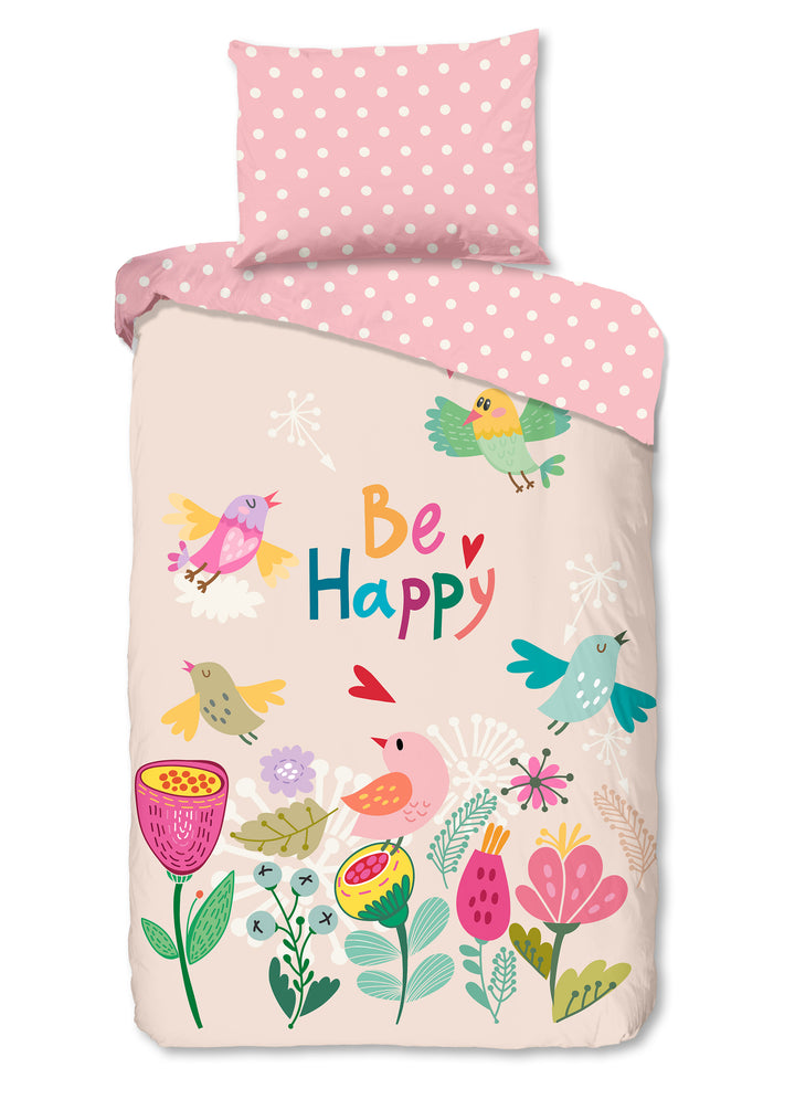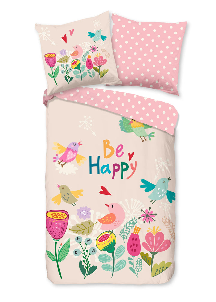 Good Morning kinderdekbedovertrek Be Happy - Roze - katoen - eenpersoons (140x220 + 60x70 cm)