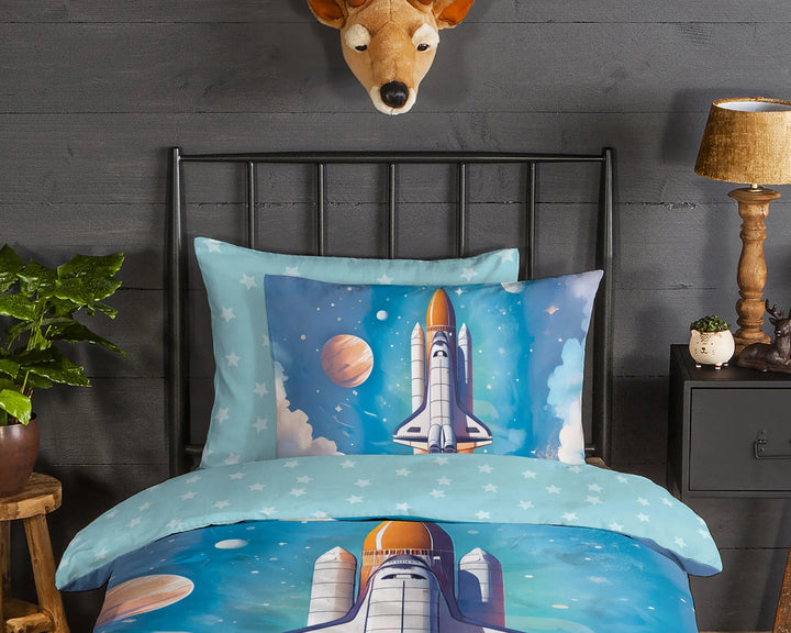 Good Morning kinderdekbedovertrek Fred - Spaceshuttle - katoen - eenpersoons (140x220 + 60x70 cm)