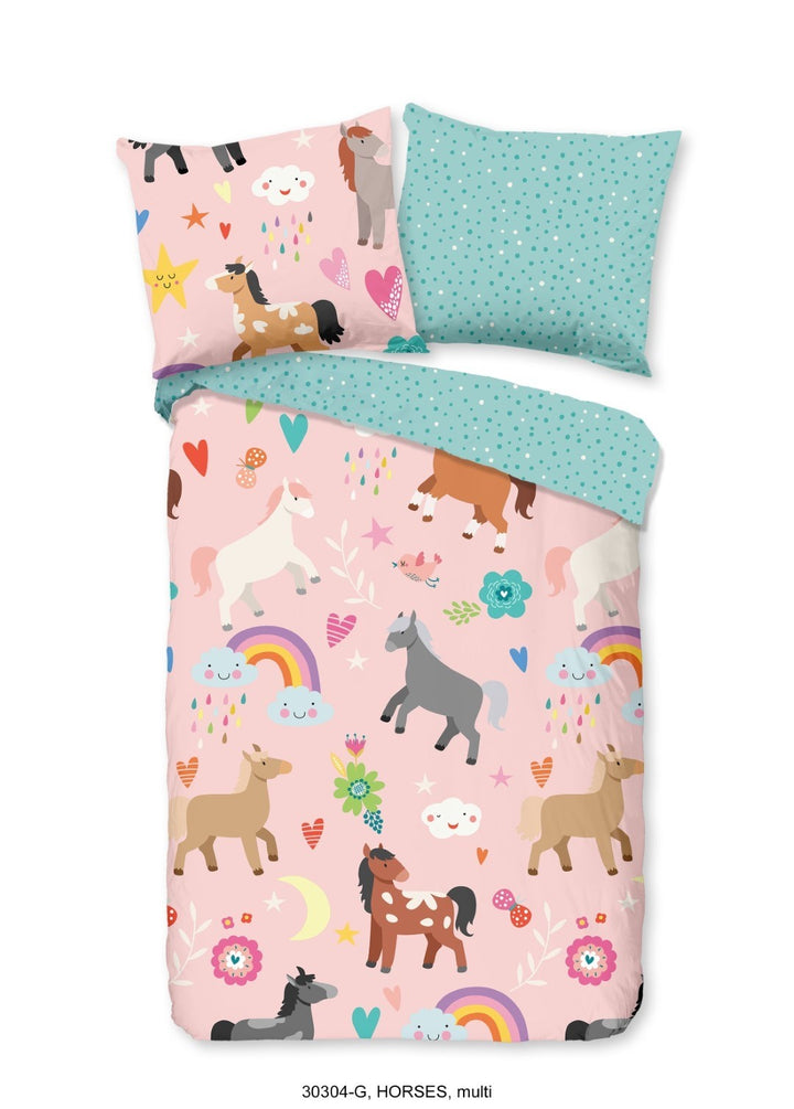 Good Morning kinderdekbedovertrek Horses - katoen - eenpersoons (140x220 + 60x70 cm)