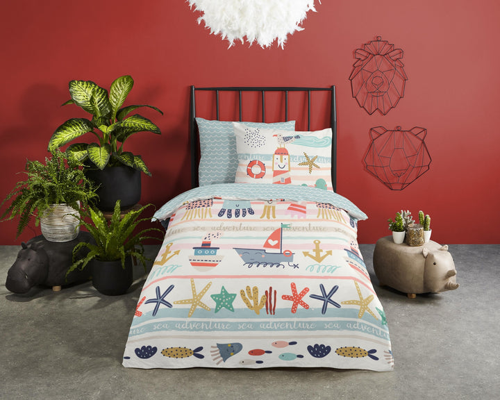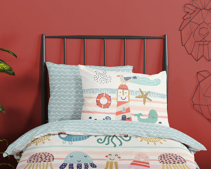 Good Morning kinderdekbedovertrek Sea - katoen - eenpersoons (140x220 + 60x70 cm)