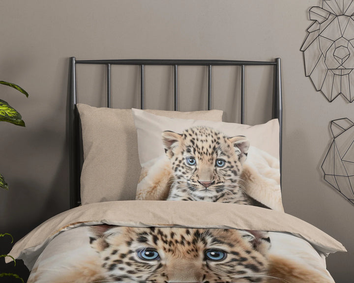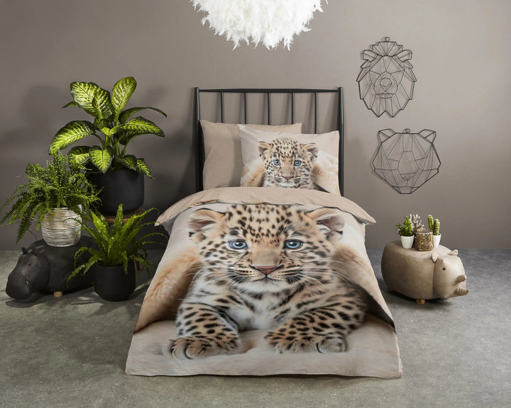 Het Good Morning dekbedovertrek Simo is een prachtige keuze voor iedereen die van dieren houdt. De lieve afbeelding van een jonge luipaard geeft de slaapkamer een warme en natuurlijke uitstraling. De zachte beige tinten creëren een rustgevende sfeer die perfect past in elk interieur. Dankzij het realistische ontwerp komt de schoonheid van de natuur subtiel tot leven. Dit dekbedovertrek brengt stijl en zachtheid samen voor een knusse slaapomgeving.