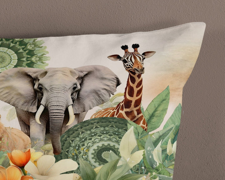 Ben jij dol op dieren en houd je van een speelse, kleurrijke sfeer in de slaapkamer? Dan is het HIP dekbedovertrek Sagadar echt iets voor jou! Tussen een weelderige mix van bloemen en bladeren verschijnen een majestueuze olifant, een stoere leeuw en een nieuwsgierige giraffe – alsof je midden in een exotische safari stapt. De effen groene achterzijde biedt een rustige tegenhanger en maakt het makkelijk om te variëren in stijl of een speels omslageffect te creëren.