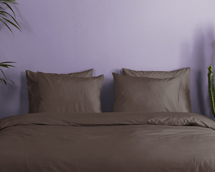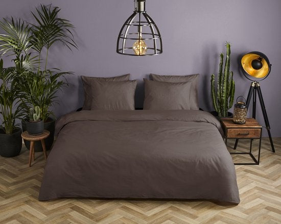 HIP dekbedovertrek uni bruin - Katoensatijn