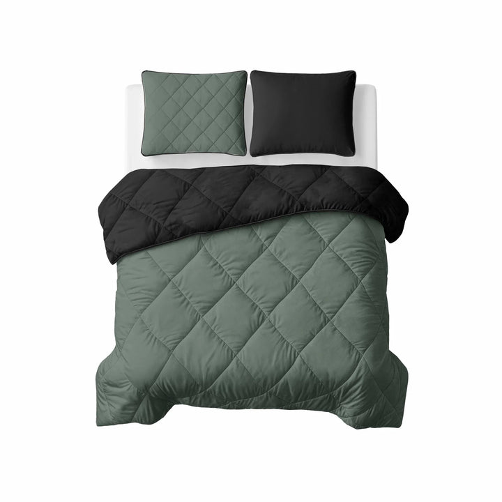 Lazy All-in-One dekbed inclusief kussensloop - Groen/Zwart