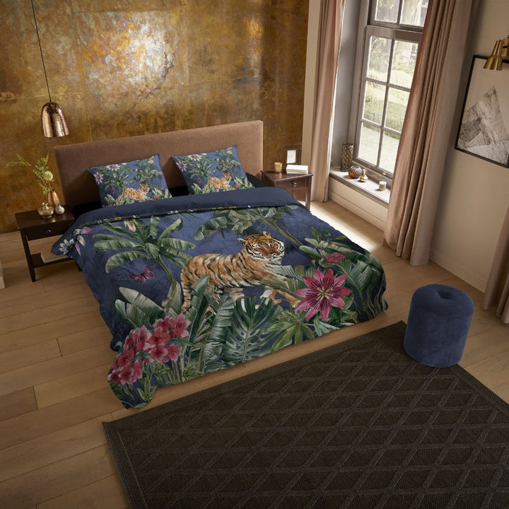 Het Pure dekbedovertrek Kane is een echte eyecatcher voor je slaapkamer. Met een indrukwekkende print van een tijger te midden van een weelderige jungle brengt dit overtrek een vleugje wilde elegantie in je slaapruimte. De rijke kleuren en verfijnde details zorgen voor een levendig en exotisch geheel dat direct de aandacht trekt. Dit dekbedovertrek combineert avontuur met stijl en creëert een unieke, uitnodigende sfeer. Haal de mystiek en kracht van de jungle in huis met het prachtige Pure dekbedovertrek Kane. Bestel vandaag nog en geniet van een comfortabele nachtrust in een stijlvol natuurlijk decor.