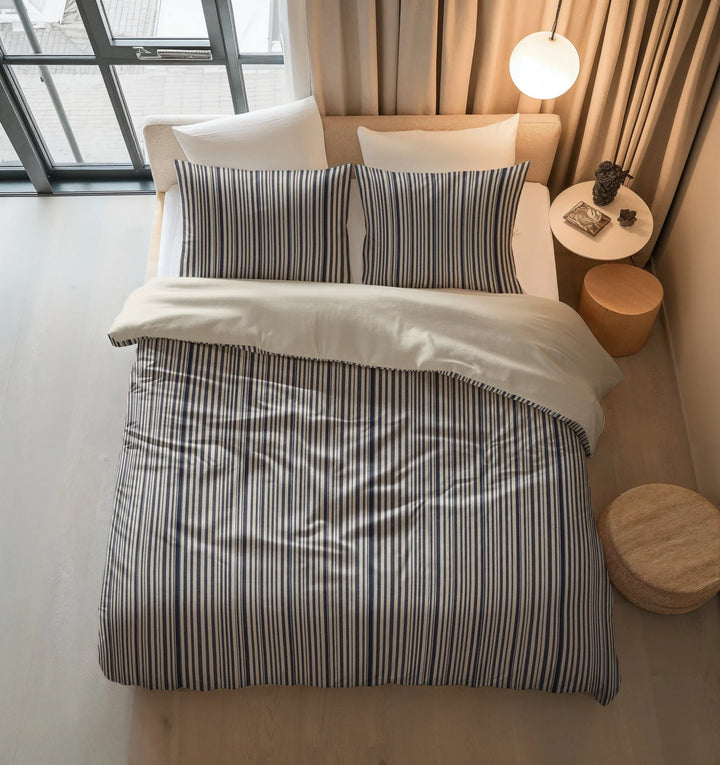 Haal een frisse, ontspannen sfeer in je slaapkamer met het Sleeptime Blue Regatta dekbedovertrek. De speelse combinatie van blauwe en beige strepen zorgt voor een tijdloze, maritieme look. De rustige tinten brengen een gevoel van harmonie en balans. Het ontwerp oogt klassiek, maar past net zo goed in een modern interieur. Zo geef je je bed in één klap een verzorgde en stijlvolle uitstraling.