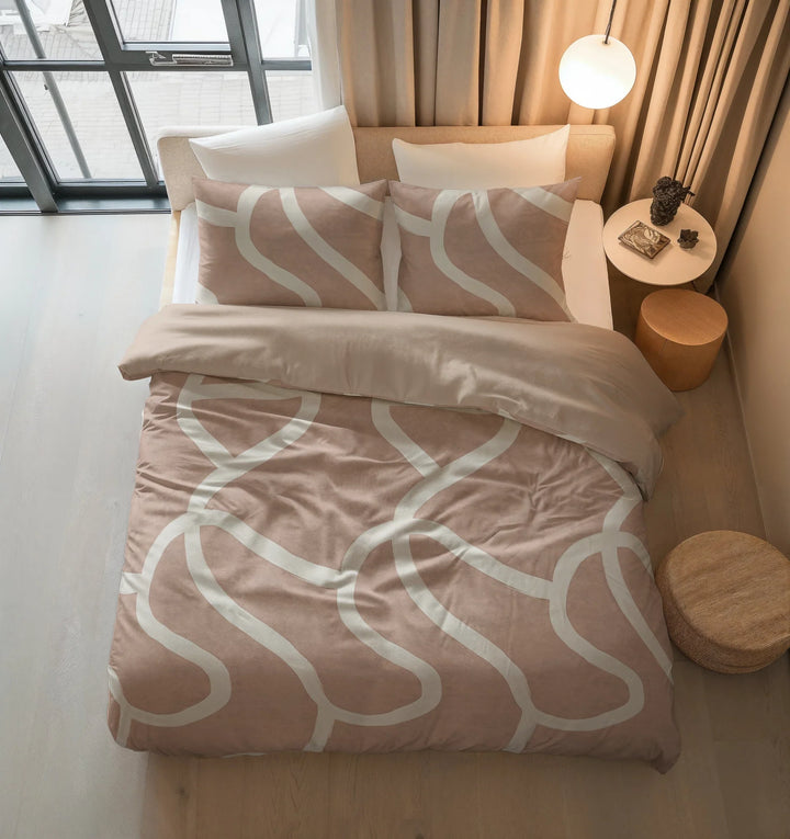 Geef je slaapkamer een warme en moderne uitstraling met het Sleeptime Clay Contours dekbedovertrek. Het speelse lijnpatroon in wit op een zachte perzikbruine achtergrond zorgt voor een eigentijdse en rustgevende sfeer. De effen onderzijde voegt een gevoel van balans en eenvoud toe. Dit ontwerp straalt natuurlijke elegantie uit en past perfect in een stijlvol interieur. Ideaal voor wie houdt van een rustige en verfijnde slaapomgeving met karakter.