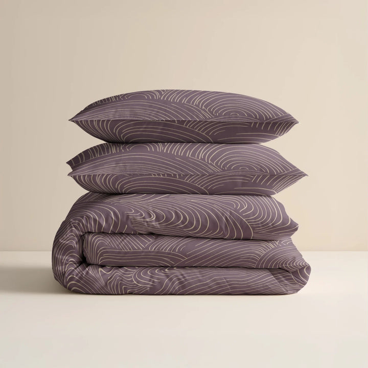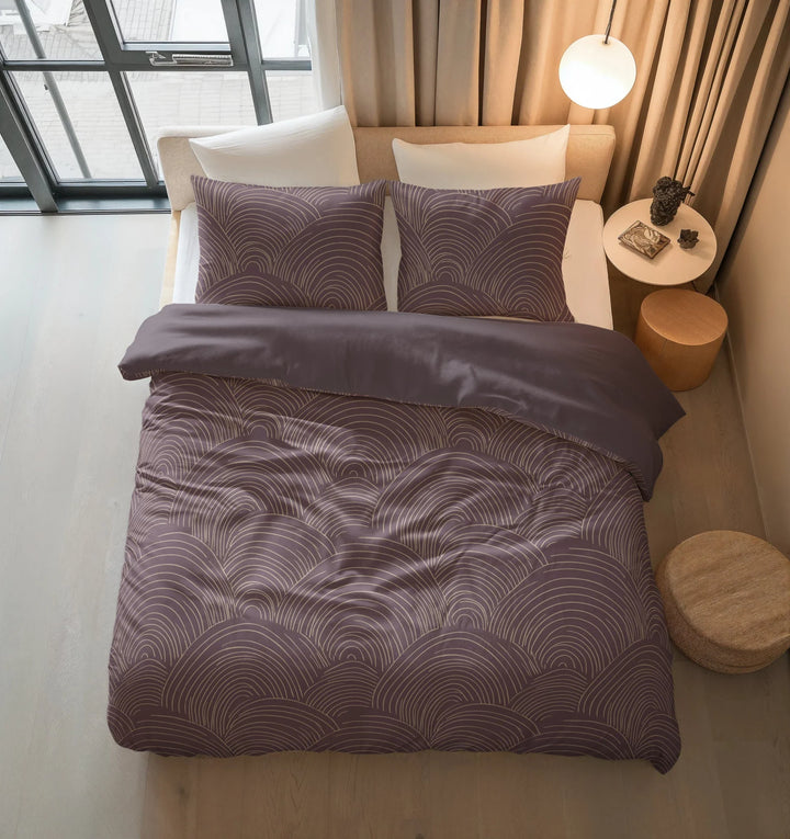 Breng een elegante en serene uitstraling in je slaapkamer met het Sleeptime Dreamscape dekbedovertrek. Het golvende patroon in warme mauve- en paarstinten geeft het geheel een moderne en harmonieuze look. De effen onderzijde zorgt voor een rustig contrast en een uitgebalanceerd geheel. Dit ontwerp ademt luxe en verfijning, zonder overdadig te zijn. Ideaal voor wie houdt van een stijlvolle slaapkamer met een vleugje warmte en rust.