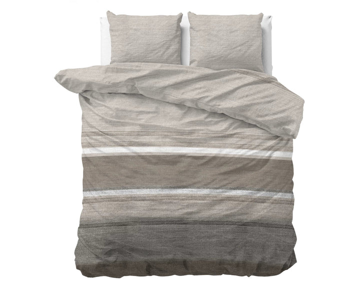 Sleeptime dekbedovertrek Stone Stripe - Flanel - Taupe