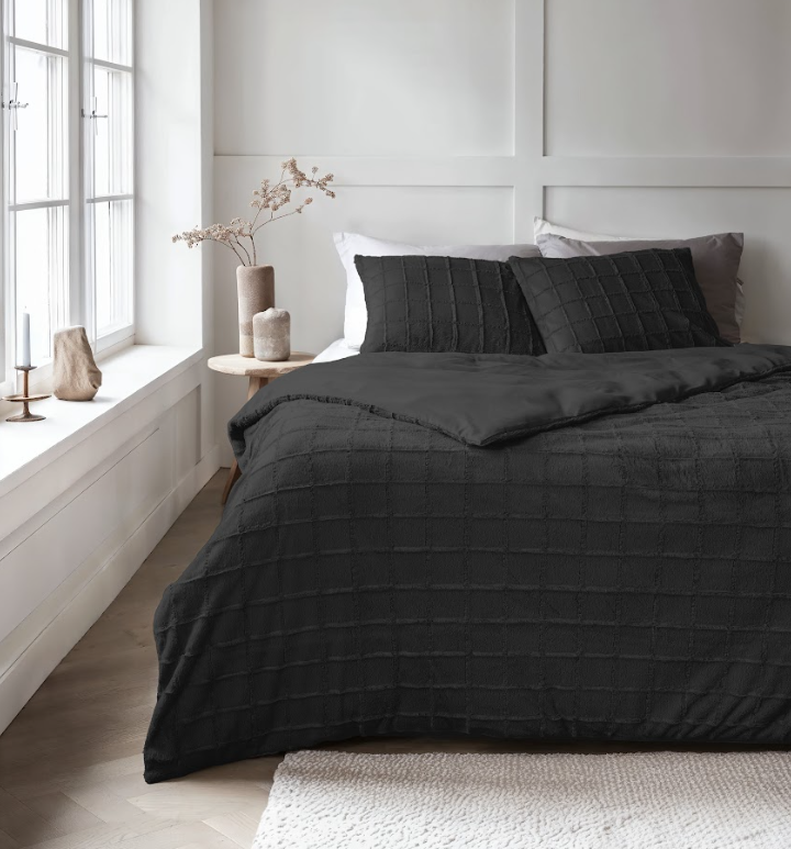 Ervaar het ultieme comfort met het Sleeptime Faux Fur Check dekbedovertrek zwart. Dit dekbedovertrek is gemaakt van heerlijk fake faux fur stof aan de bovenzijde en soepele microvezel aan de onderkant....