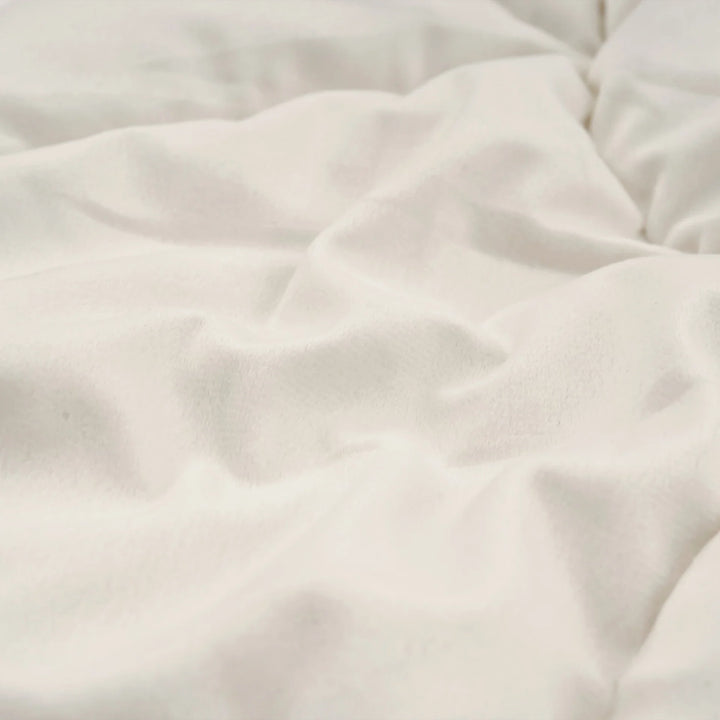 De bovenkant is gemaakt van fluweelzacht velvet (polyester) dat warmte vasthoudt en zorgt voor een knusse, omhullende slaapervaring tijdens koudere nachten. De onderkant is van lichte, ademende microvezel, ideaal voor de warmere maanden. Zo geniet je het hele jaar door van een perfect slaapklimaat – zonder van dekbed te hoeven wisselen.