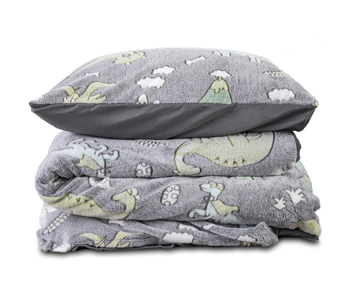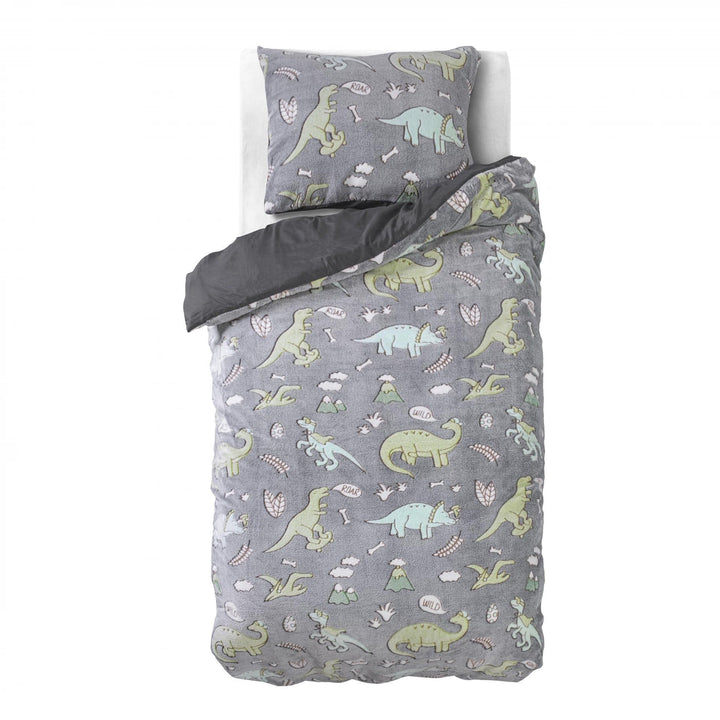 Sleeptime teddy fleece dekbedovertrek- glow in the dark - Dinosaurs - onderkant microvezel - eenpersoons