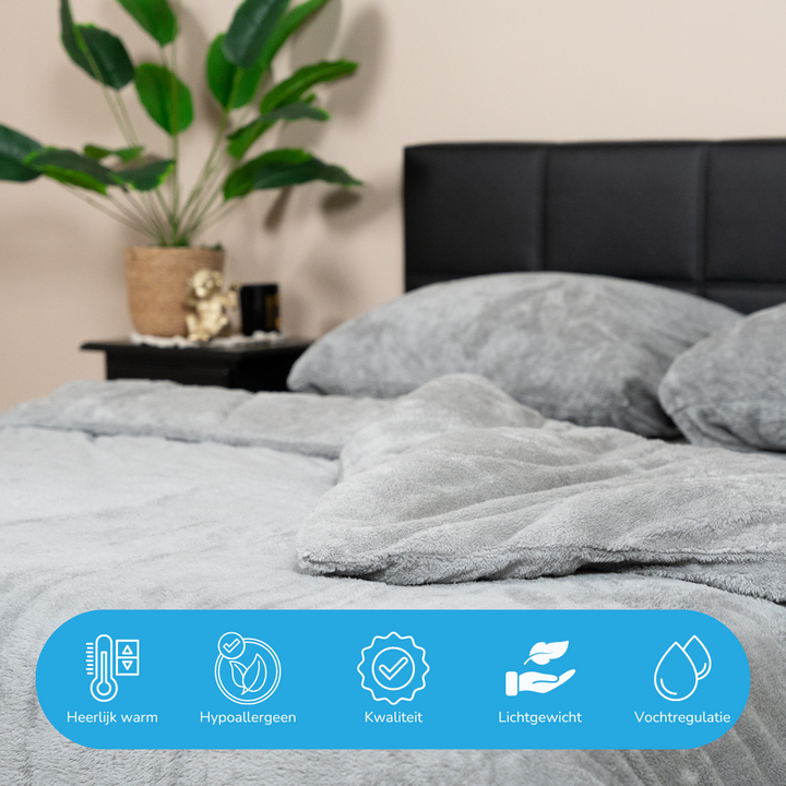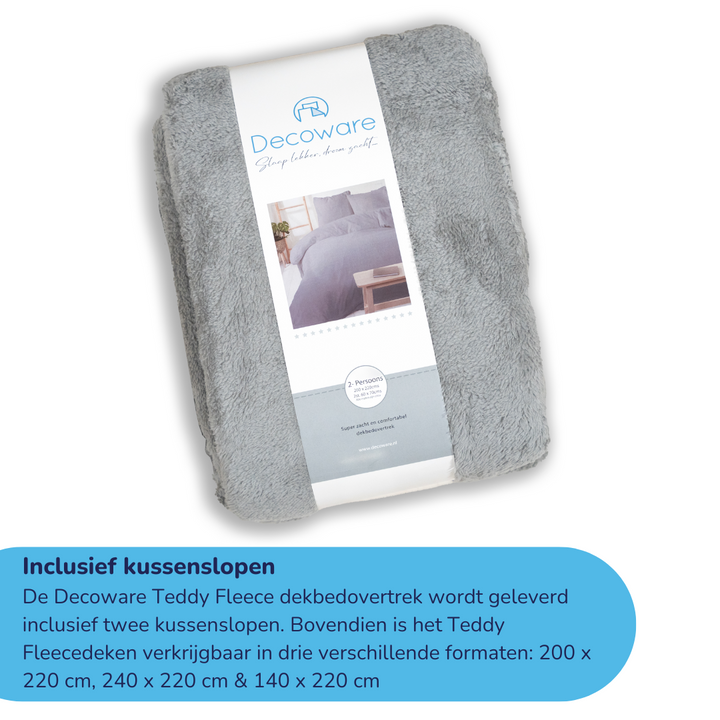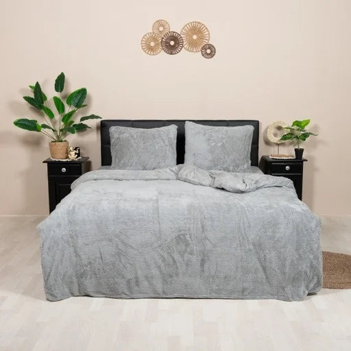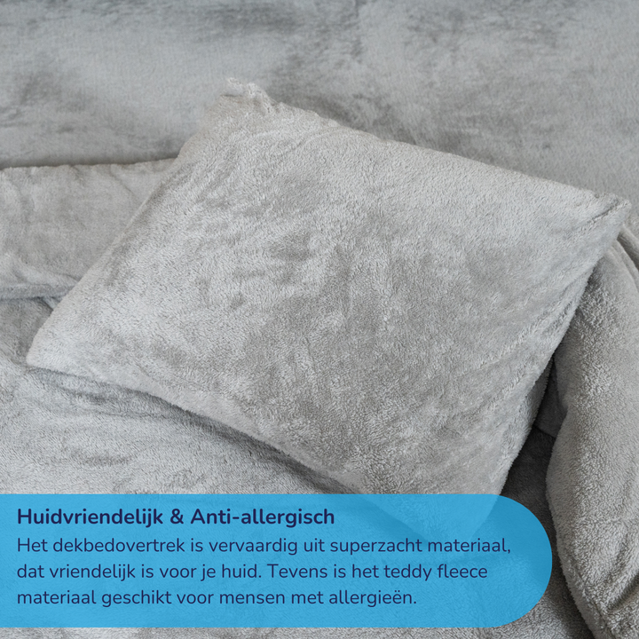 Decoware teddy fleece dekbedovertrek - grijs - 2 kanten teddy