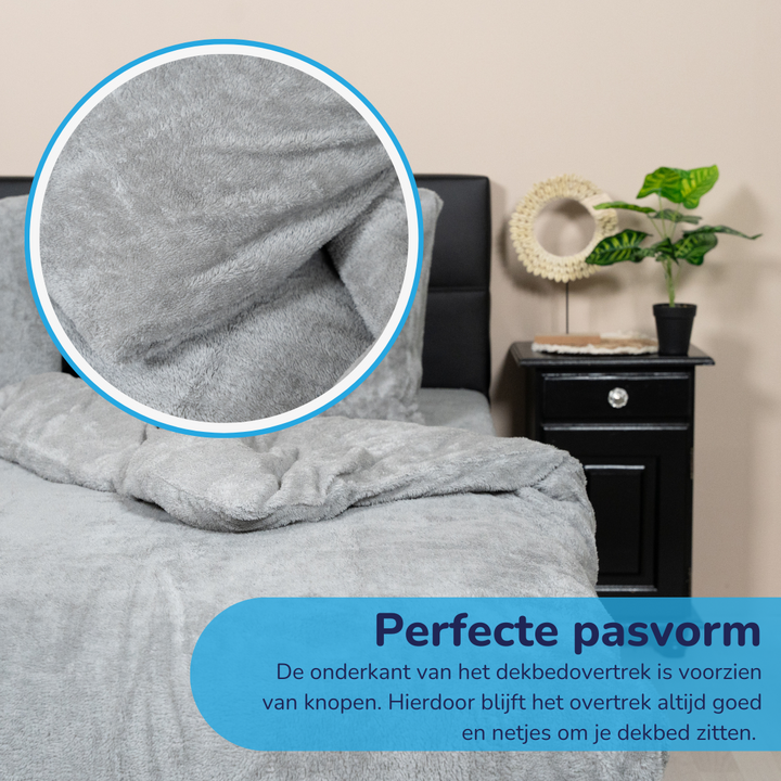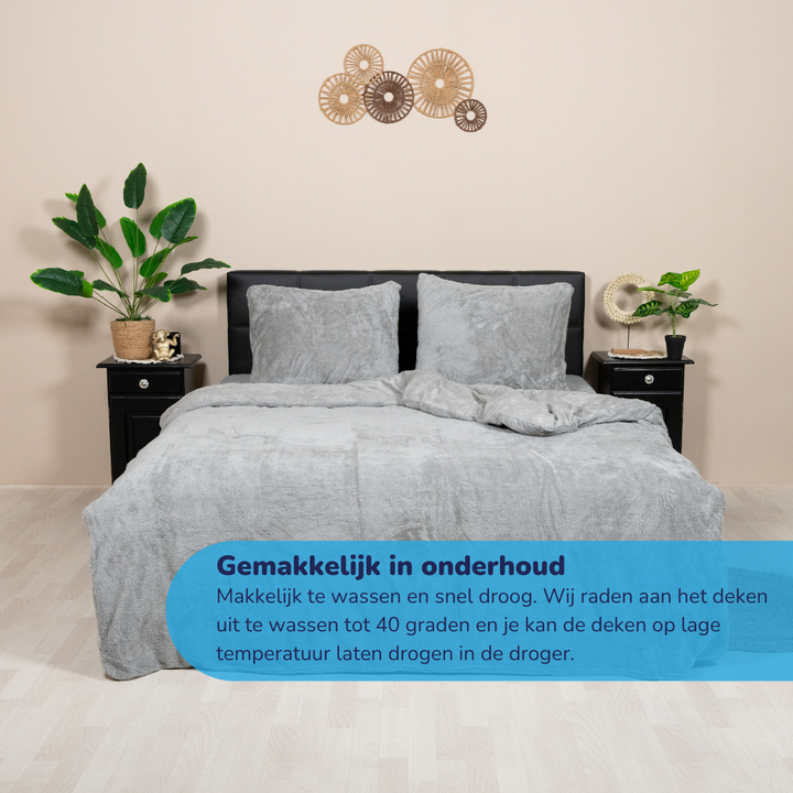 Het Super zacht teddy fleece dekbedovertrek is een heerlijk warm en fluffy dekbedhoes, perfect voor de wintermaanden. Het overtrek is gemaakt van zachte teddy stof, die aan beide kanten dezelfde zachte textuur heeft. Hierdoor kun je genieten van het warme en comfortabele gevoel van teddy fleece, ongeacht aan welke kant je slaapt.