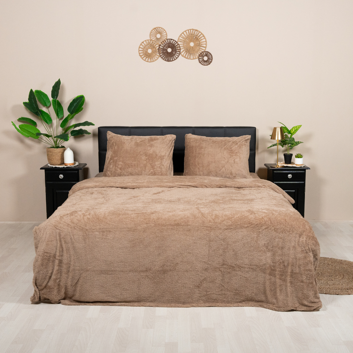 Dit mink kleurige dekbedhoes is gemaakt van de meest pluizige en zachte teddy stof, waardoor je gegarandeerd heerlijk zult slapen tijdens de koude wintermaanden